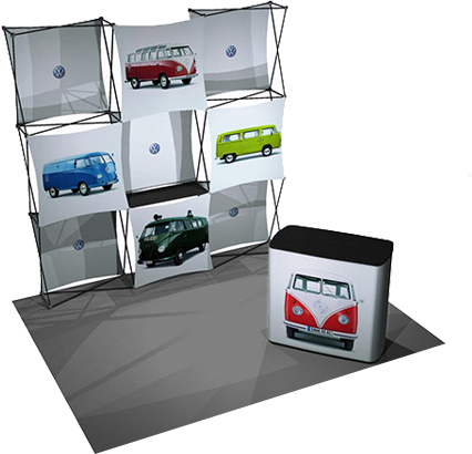 The Fabric Pop-up has become very popular with exhibitors: portable, attractive, fast set-up, and even faster breakdown all combine for a great show experience.