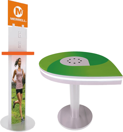 Customize your charging solution with distinctive graphics, unique colors, and LED lights, both white and programmable RGB. Your customers will appreciate the opportunity to charge their phone while learning more about your products and services.
