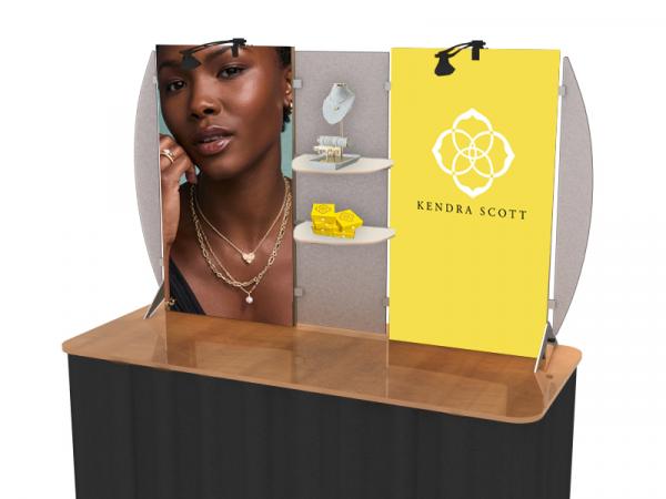 The slim frame leaves ample room on the table for literature, promotional products, and demo materials. Best of all, the SEGUE table top packs in a portable case with wheels. Choose from three existing sizes or design a size that fits your marketing goals.