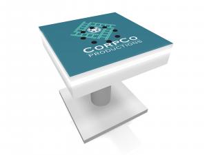 Quite often, a few custom elements added to the design can give the entire design a custom look even if it’s as simple as some colorful laminated workstations, shelves, or a reception counter. Custom laminated soffits and backlighting are also nice touches that are inexpensive and well worth the investment. As a bonus, if you re-rent the same exhibit, your second rental will most likely be less expensive, since your first rental covered the cost of those custom components.