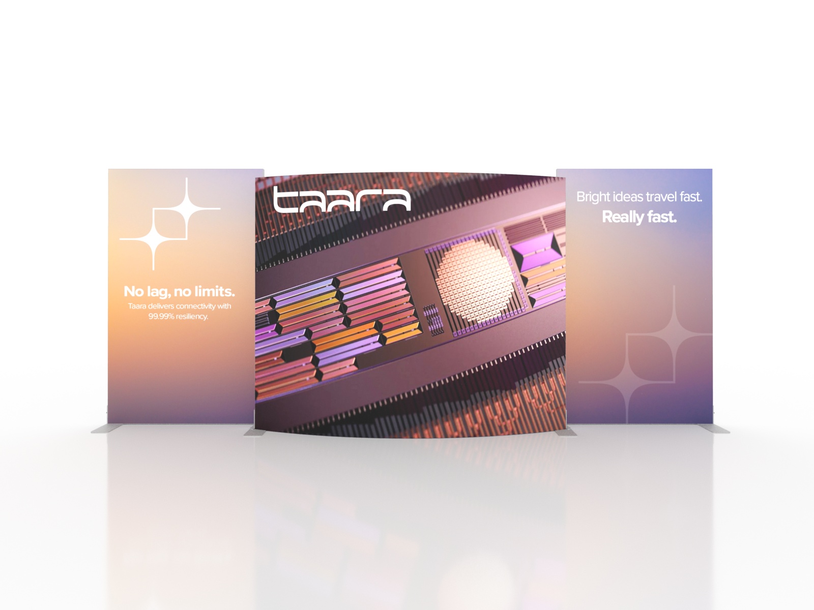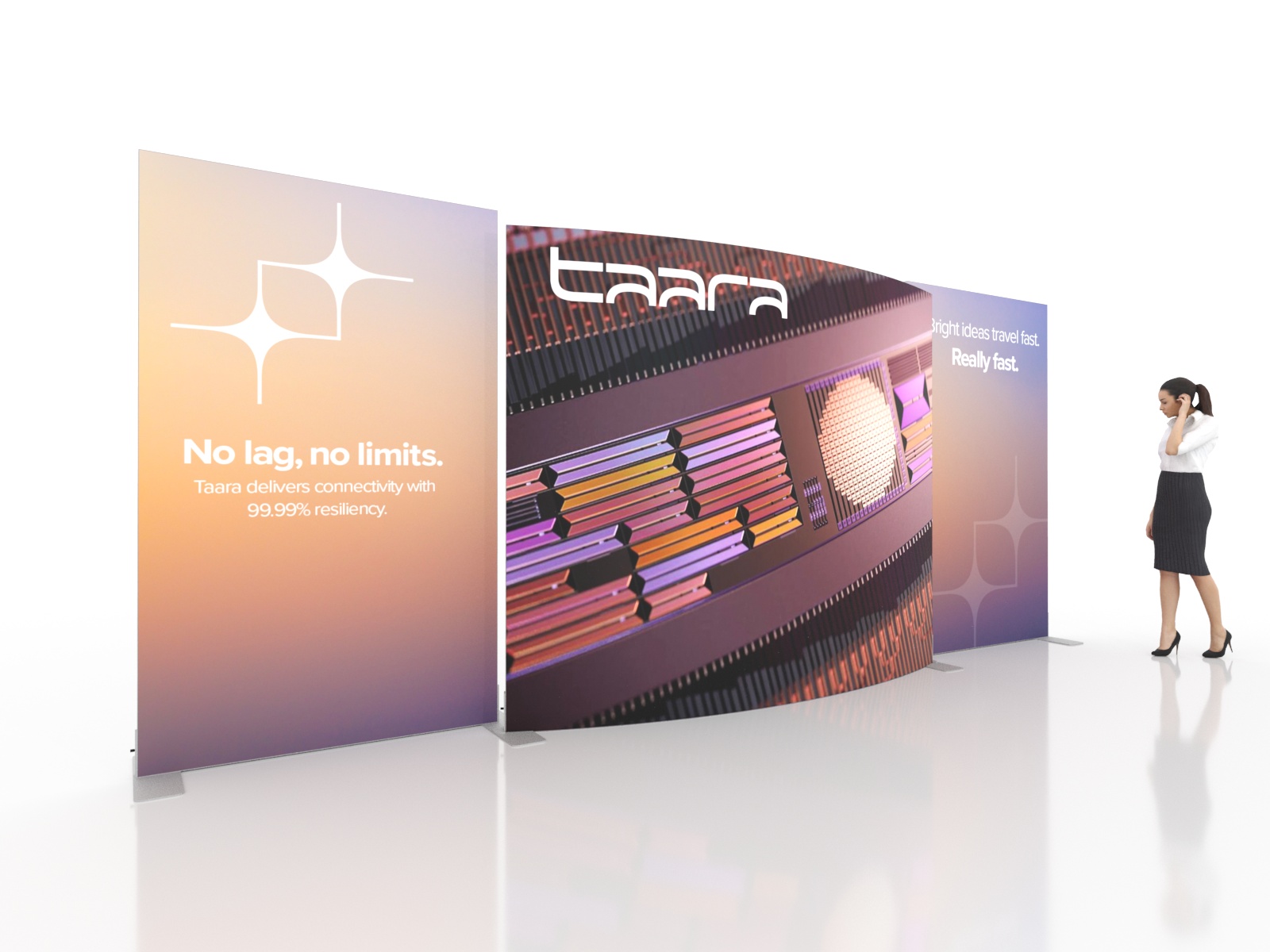 Personalize your Symphony Display with attractive counters, workstations, floating graphics, iPad clamshells, and monitor mounts. The lightweight aluminum frames are engineered for SEG dye-sublimated fabric graphics for a seamless, wrinkle-free look. Add floating graphics for additional visual layering and branding.