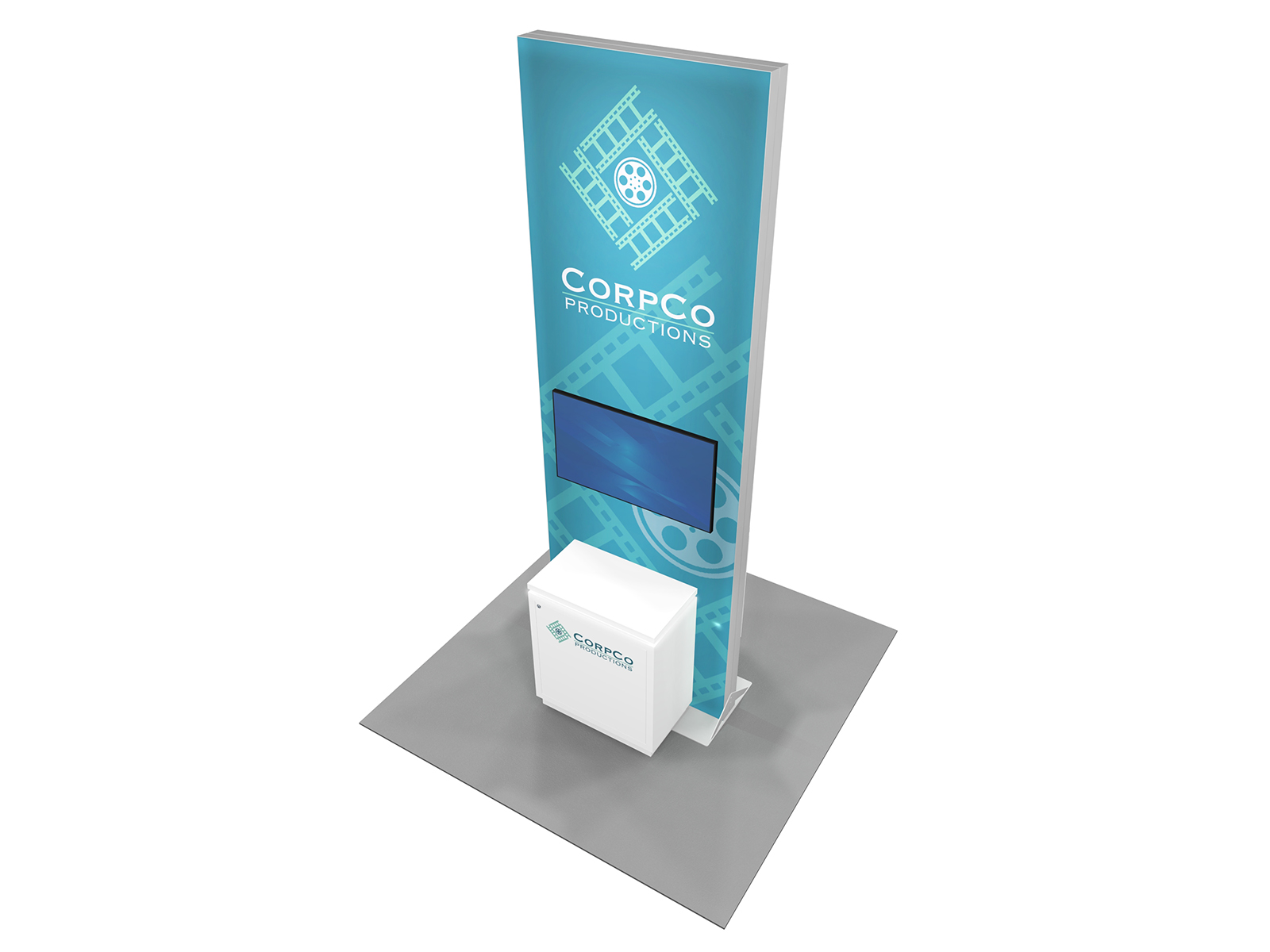 When choosing the right counter or pedestal for your display, consider how you will use it on the show floor. Do you need locking storage? Will the counter or pedestal hold a lead retrieval machine, laptop, or other electrical device? If so, you will need wire management. That may be as simple as ordering a grommet for the counter. If you are planning to use a tablet computer, consider the tablet insert option for the counter top. This option is practical, attractive, and secure for many tablets, such as an iPad.