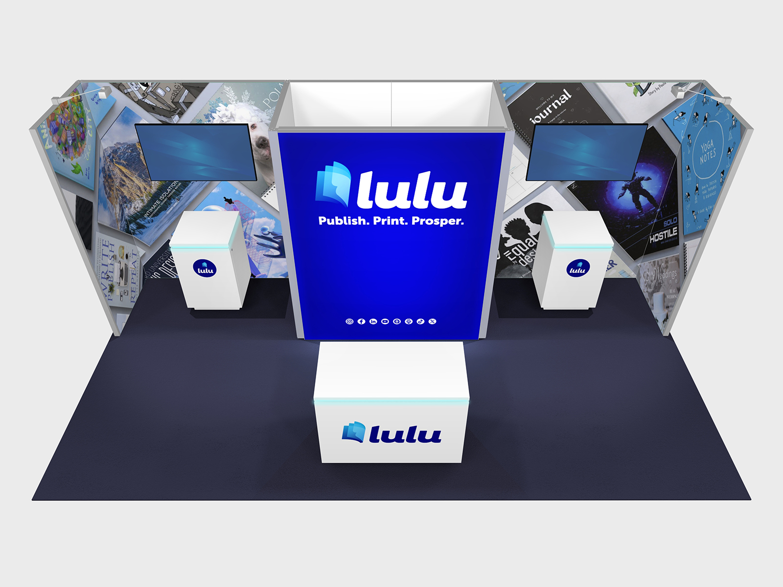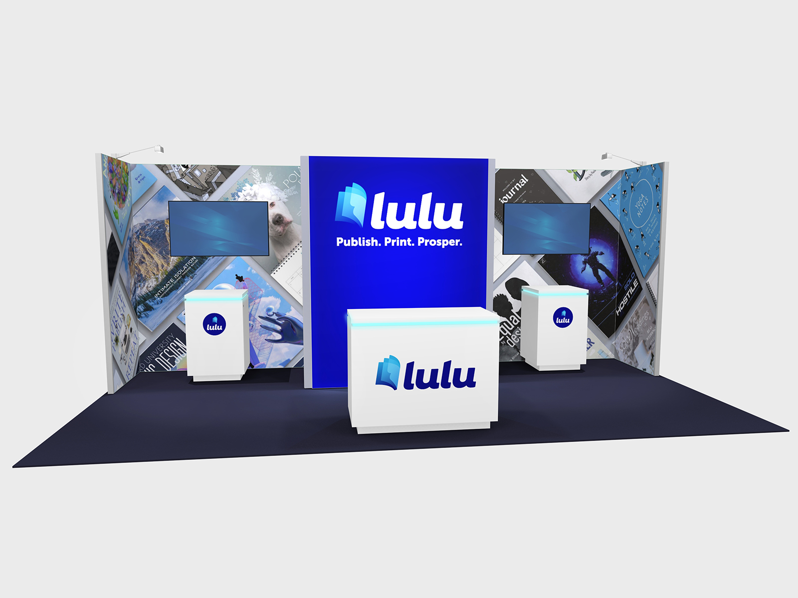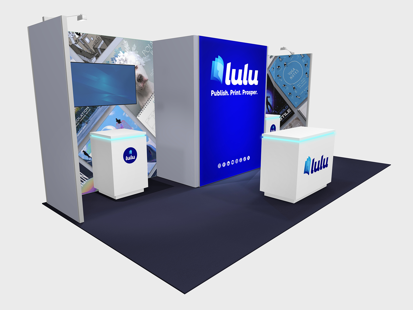 A fabulous trade show exhibit doesn't have to fireworks to draw a crowd. But it does require compelling graphics, a targeted strategy, and a professional booth staff. The RE-2154 10 x 20 exhibit has extensive large format graphics for branding and messaging. The left and right insets are perfect for demos with large monitors and workstation counters. The design includes an attractive reception counter for branding and storage. In addition, the RE-2154 has a large walk-in closet for secure storage of products, giveaways, and personal items.