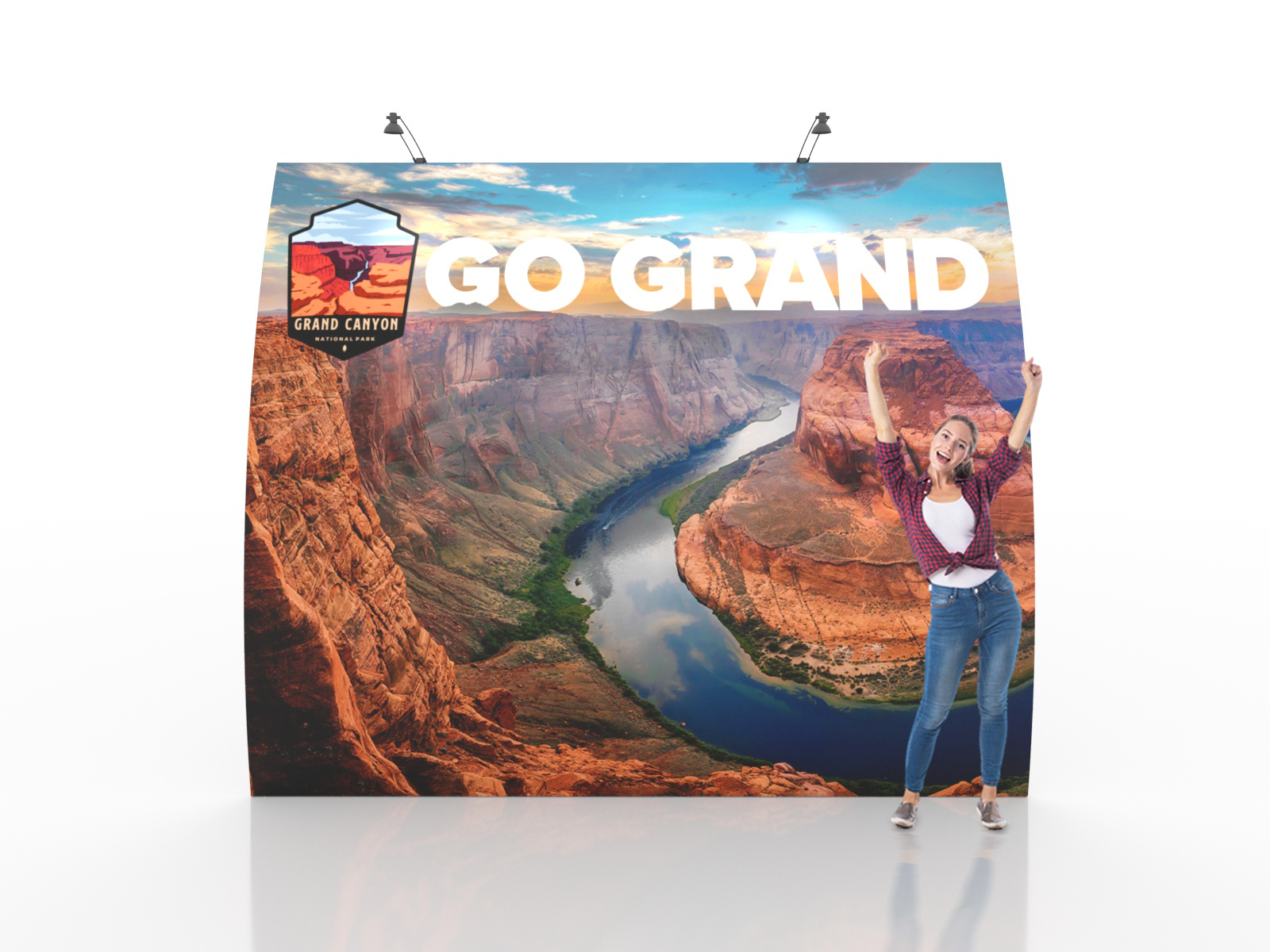 The Big One's impressive bold looks will WOW folks on the trade show floor with its curved 8 ft. high fabric graphic(s). After the show, you’ll be gone in a flash because the Big One! packs small, disassembles fast, and ships in portable case(s) with wheels. The durable aluminum frame sets-up in less than 30 minutes for a 10 x 10 using quick-assist knobs and SEG graphics. It’s that easy to maximize your presence on the trade show floor.