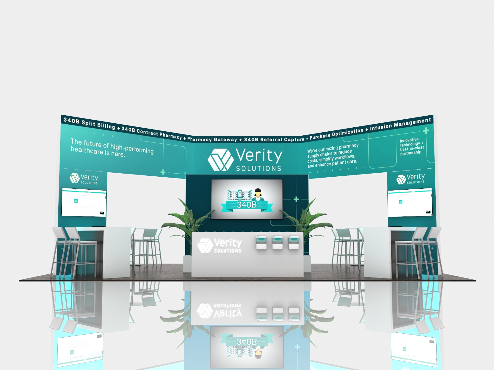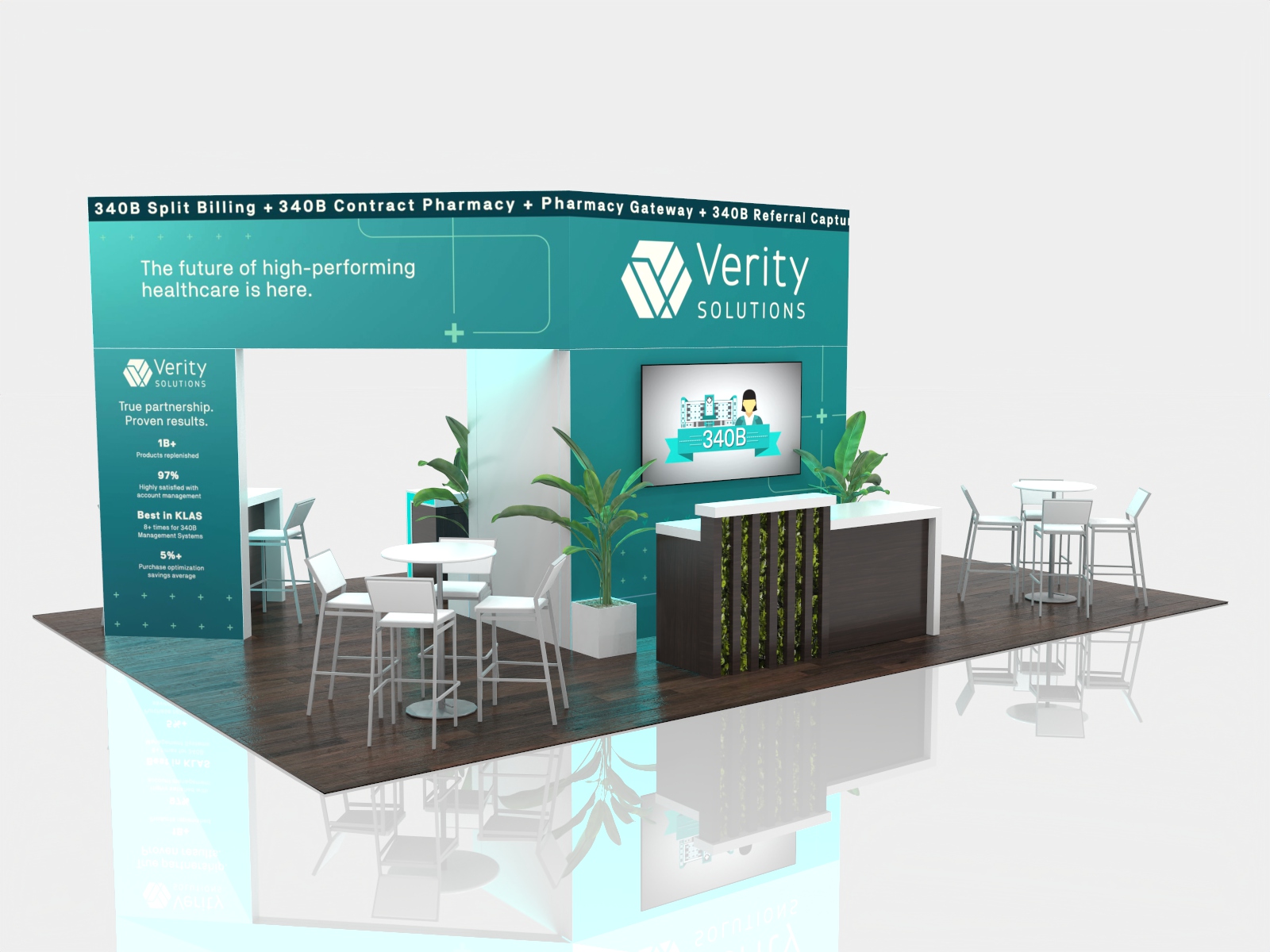 Island exhibits are displays bordering 3-4 aisles, with the smallest starting at 20’ x 20’. Inline exhibits, by contrast, typically border 1 or 2 aisles and are usually 10’ x 10’ or 10’ x 20’.