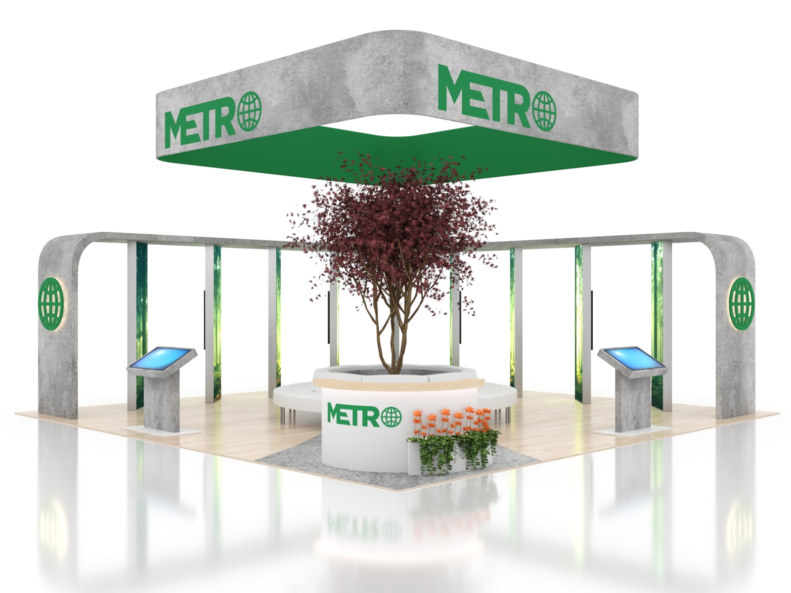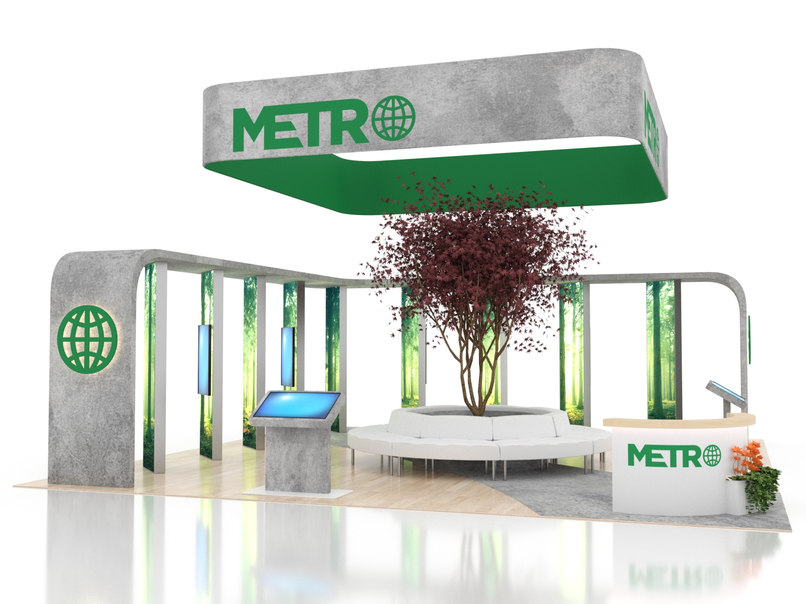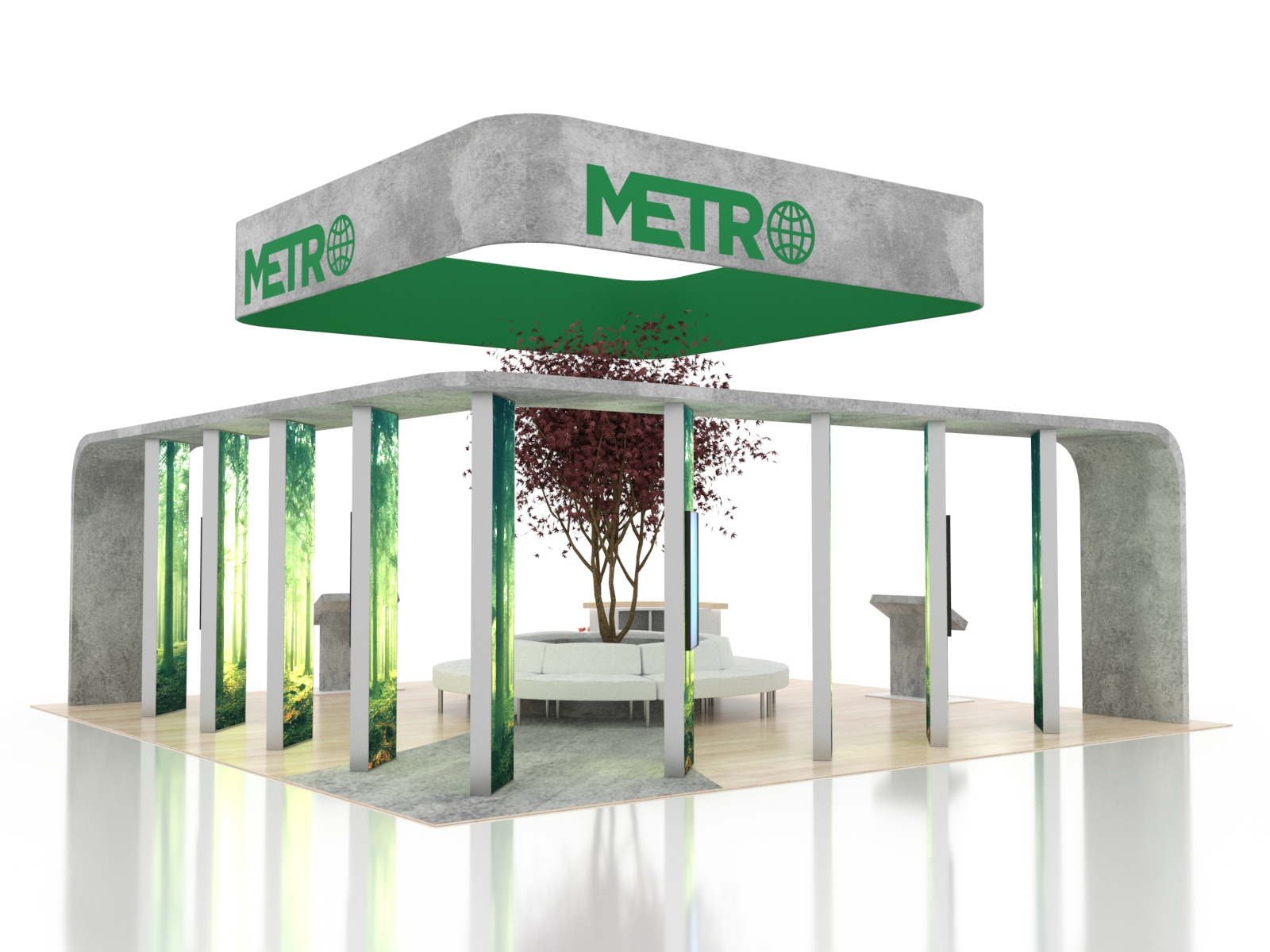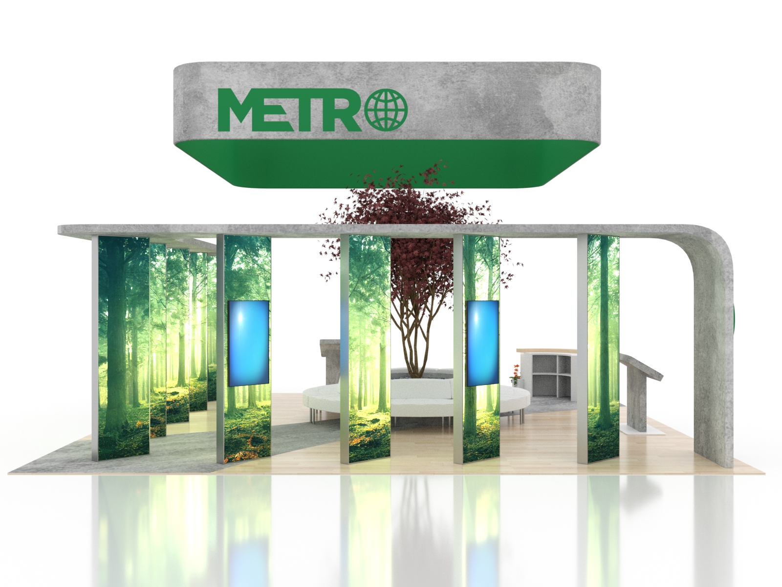 The ecoSmart Island Exhibits are design-driven, reconfigurable, and high-impact. Many islands can easily be reconfigured into 10 x 10 or 10 x 20 displays for smaller shows. We use the most sustainable materials on the market, and ecoSmart displays prove that you don't need to look green to be green, and you don't need to spend more either. You'll always get the best of both with an ecoSmart.