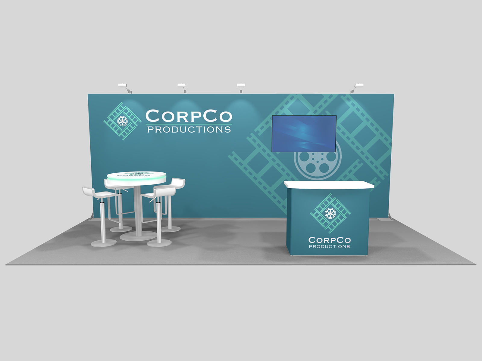 The RE-2162 comes in 10 ft and 20 ft kits with and without wings. Browse the Mix & Match Rental Guide for accessories like counters, pedestals, kiosks,, and charging tables.