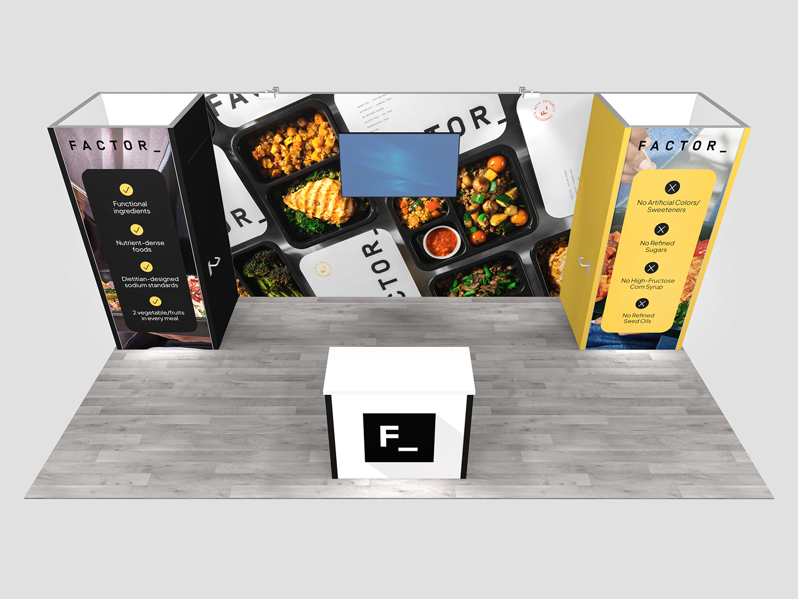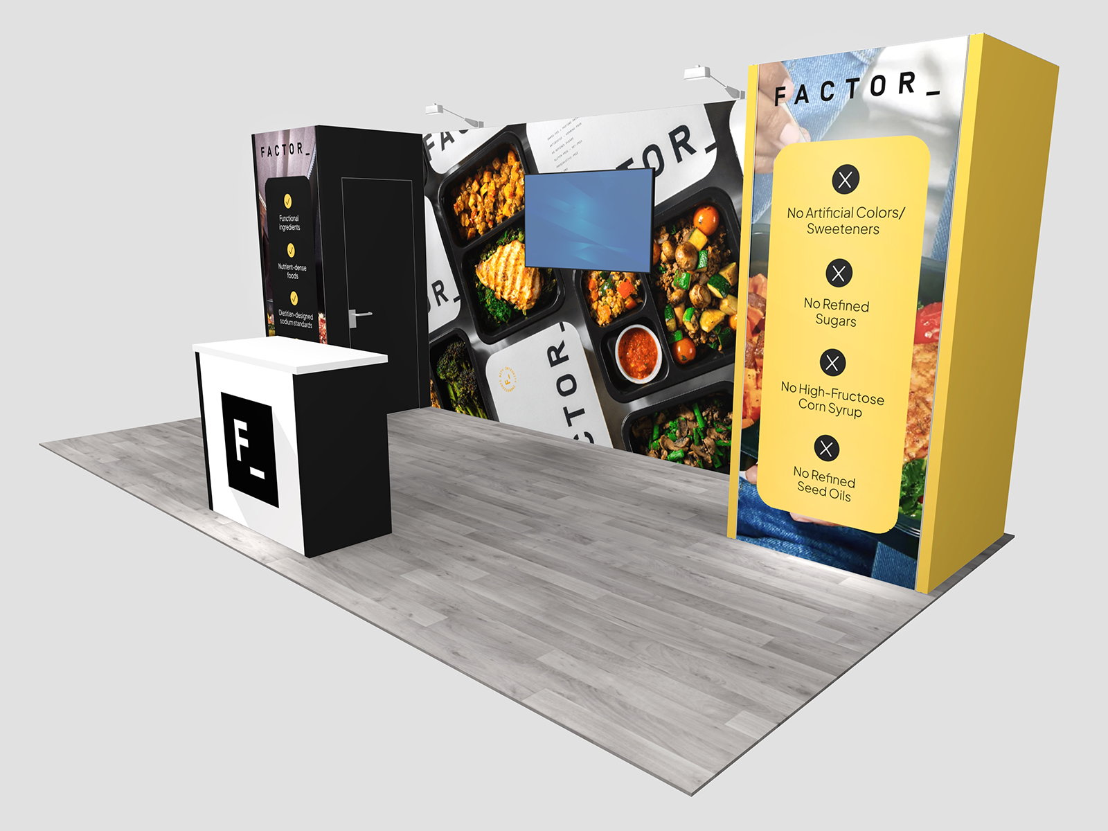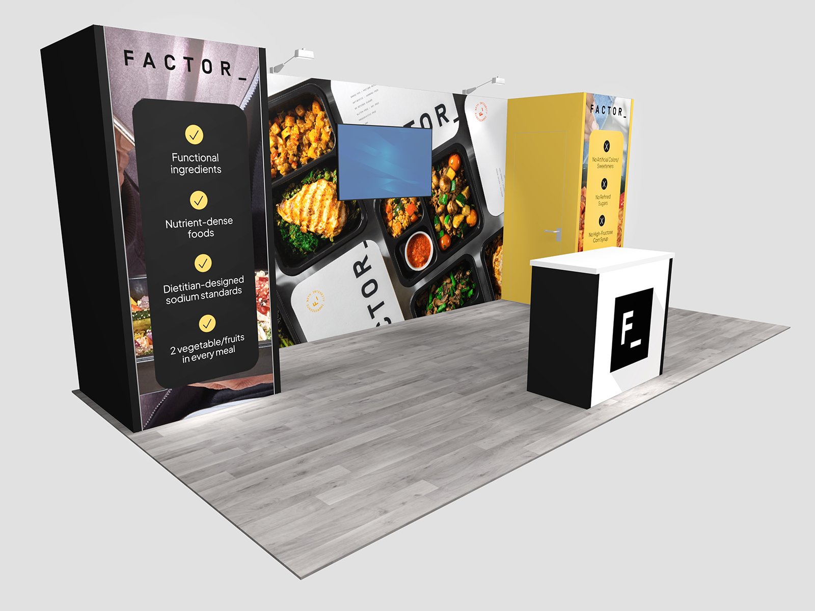 Many exhibitors blend rental components with their existing exhibit. For example, your exhibit may include the main structure, like a tower and a conference room. Renting the workstations, kiosks, or other accessories will allow you to mix and match components depending on your show requirements. In addition, it allows you to “test-drive” components to see if there’s a long-term need.