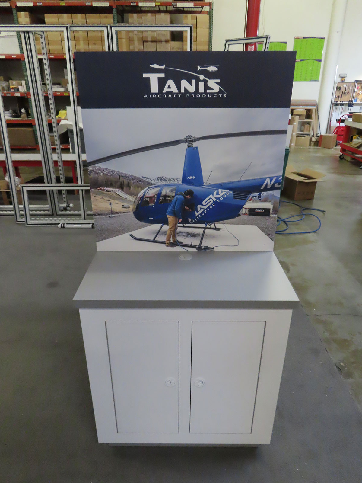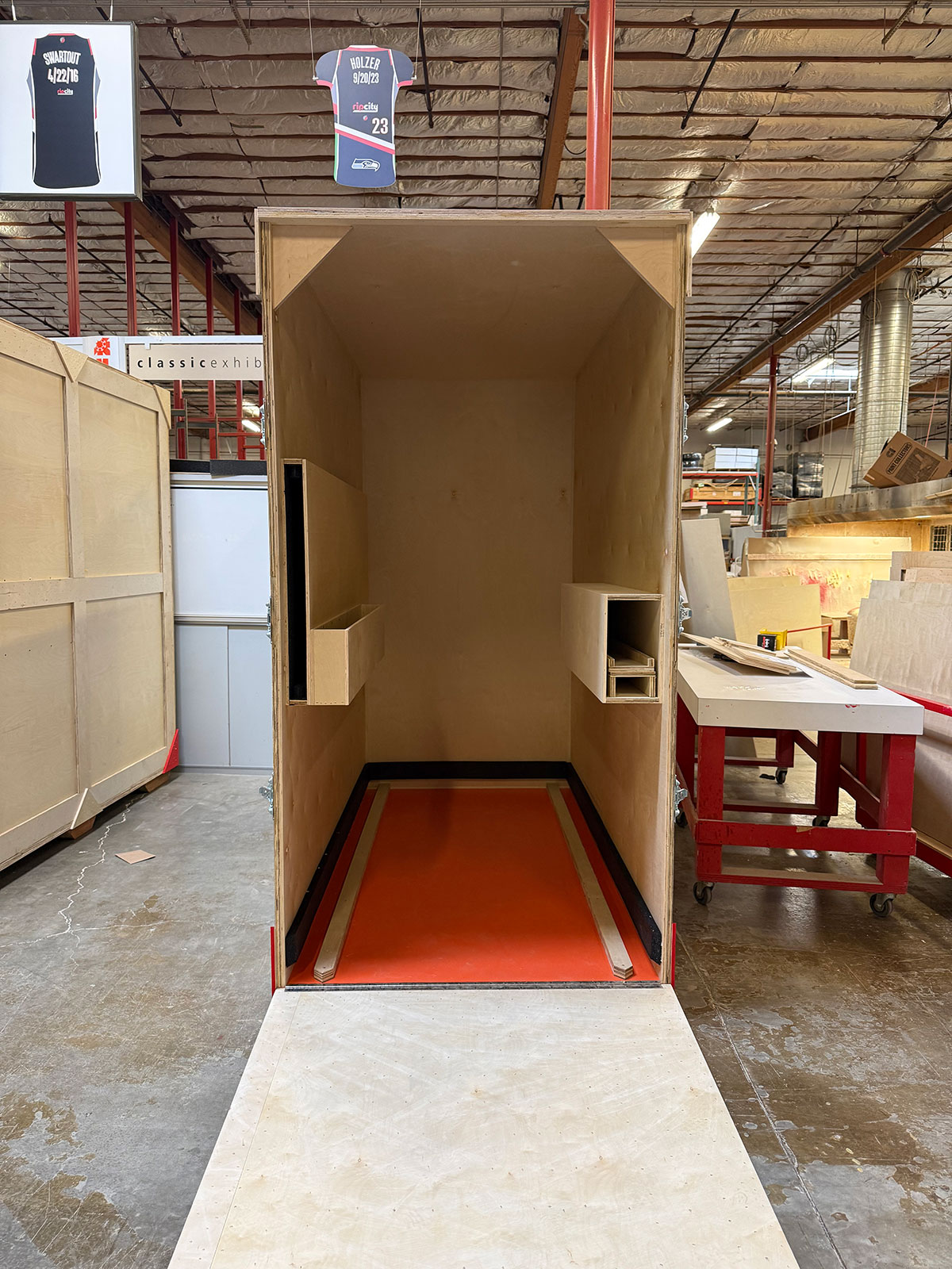 Custom Wood Room Extension with Vinyl Graphics, Product Kiosk