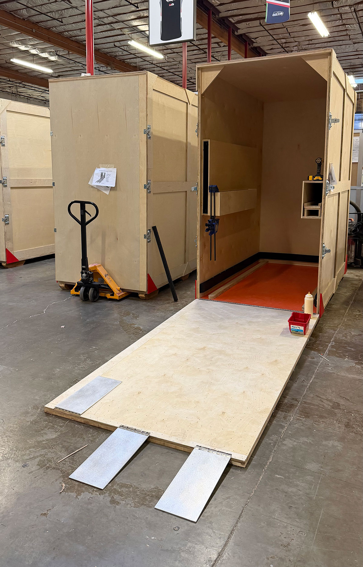Fully-Assembled Rolling Laminated Product Displays wiith Crates