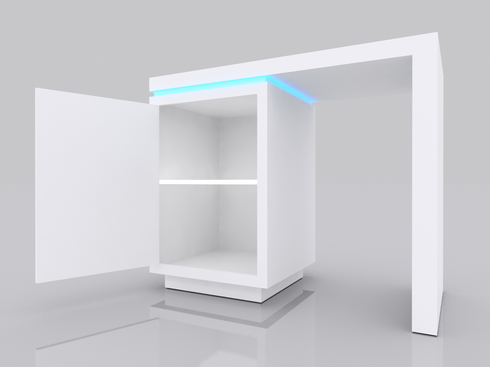 MOD-1741 Waterfall Workstation Counter Custom Counters and Pedestals offer the convenience of a fully-assembled component with all the benefits of a custom design. Choose one of the many existing kit designs or request a design unique to your trade show needs. Either way, you'll discover why a custom counter or pedestal adds sophistication and features not found on most portable or modular components. Nearly all come with locking storage. Don't see exactly what you want? No problem. We specialize in designing and building counters and pedestals that meet any need.