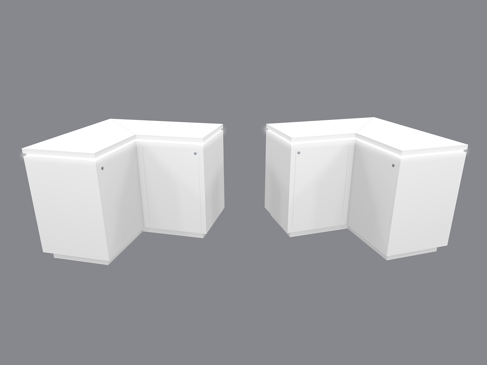 Custom Rental Counters and Pedestals offer the convenience of a fully-assembled component with all the benefits of a custom design. Choose one of the many existing kit designs or request a design unique to your trade show needs. Either way, you'll discover why a custom counter or pedestal adds sophistication and features not found on most portable or modular components. Nearly all come with locking storage. Don't see exactly what you want? No problem. We specialize in designing and building counters and pedestals that meet any need.