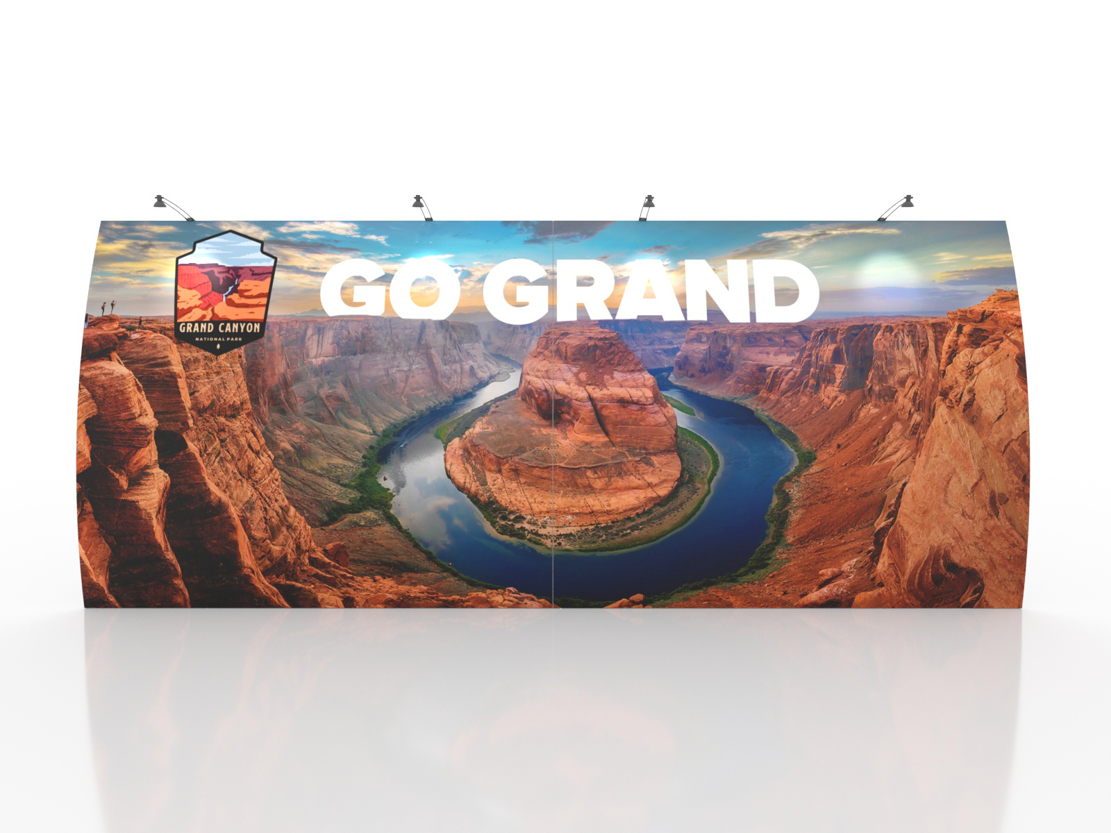 The Big One's impressive bold looks will WOW! folks on the trade show floor with its curved 8 ft. high fabric graphic(s). After the show, you’ll be gone in a flash because the Big One! packs small, disassembles fast, and ships in portable case(s) with wheels. The durable aluminum frame sets-up in less than 30 minutes for a 10 x 10 using quick-assist knobs and SEG graphics. It’s that easy to maximize your presence on the trade show floor.