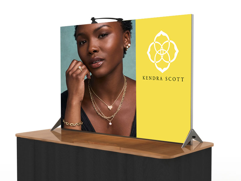 The slim frame leaves ample room on the table for literature, promotional products, and demo materials. Best of all, the SEGUE table top packs in a portable case with wheels. Choose from three existing sizes or design a size that fits your marketing goals.